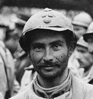 Other Ranks Infantry Kepi Model 1884/1914 / Képi d’Infanterie, modèle 1884/1914: The 2nd, alternative head wears the earlier type M1884 /1914 Kepi in gris bleuté. From the end of 1914, beginning of 1915, one saw more and more French troops wearing the new simplified kepi M1914 version (without piping), but there were still many of the old caps around, especially with reserve and territorial units. The chin-strap and visor were still made out of blackened leather, with Tombac (or sometimes zinc) buttons and black painted vents at each side.
