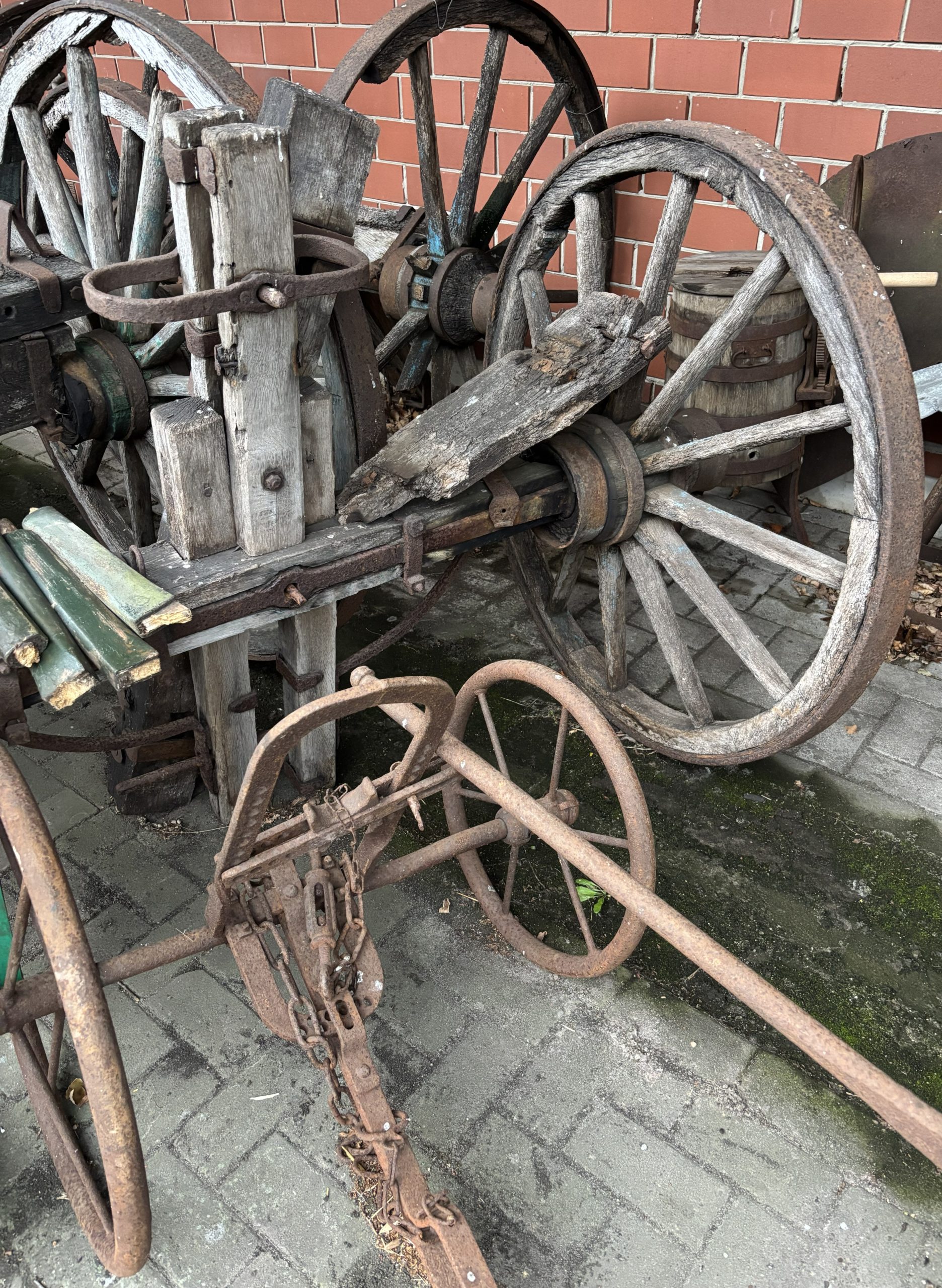 I have also had a good look at old wooden agricultural equipment (mainly from the 1960s and 70s) on farms here in Northern Germany, just to get an idea on how wood and metal age when outside for longer periods. Below is a selection of photos of this equipment.