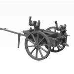 These simple wooden MG transport carts first appeared during the mid-war period (1916 onwards) and were used predominantly to transport the lighter of the German machine guns, the MG 08/15. Other uses of the cart included the transport of the heavier German MG 08, the Mauser 13mm Anti-Tank Rifle, general supplies, incl. ammunition or even the carrying of wounded personnel away from the immediate front-line areas (the rear MG support being used as a backrest for a sitting person, with legs each side of the second and front MG support).