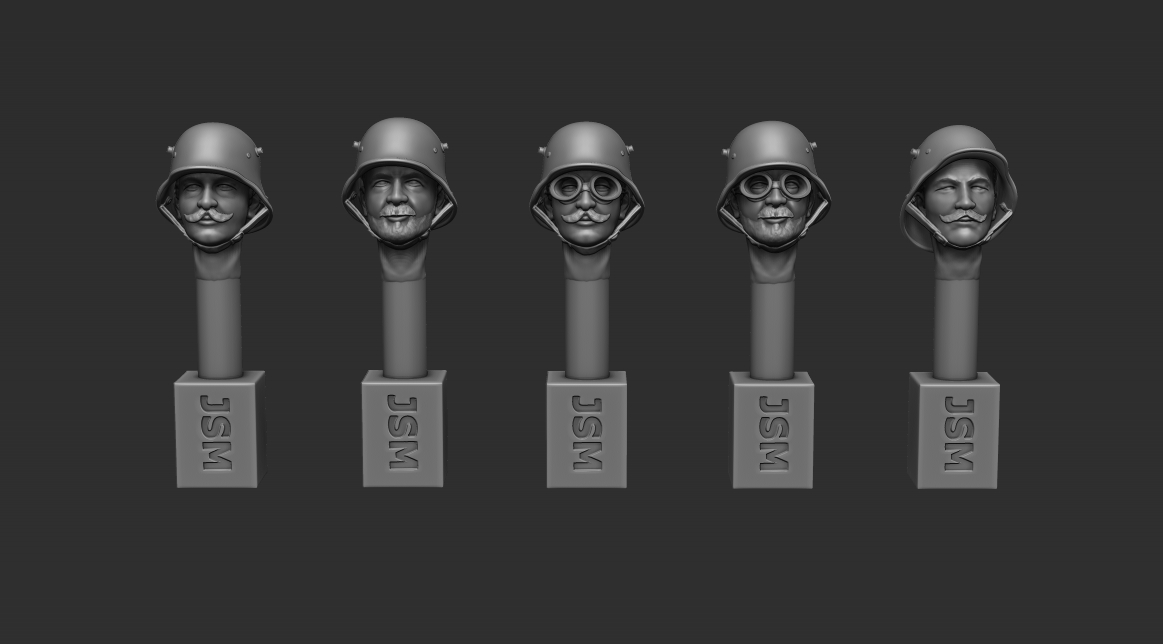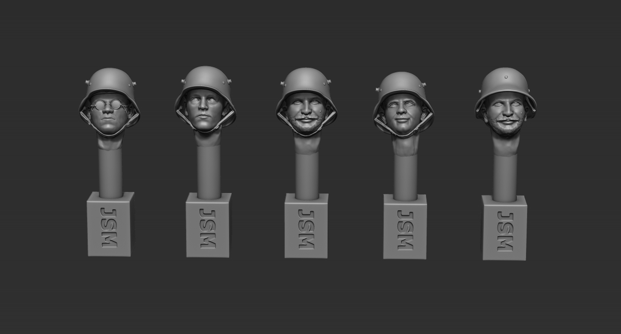 • Contents / Inhalte: 5 x 1/35th German Heads with Field Cap – Set 2 / 5 x Dt. Köpfe mit Feldmütze – Set 2 – New