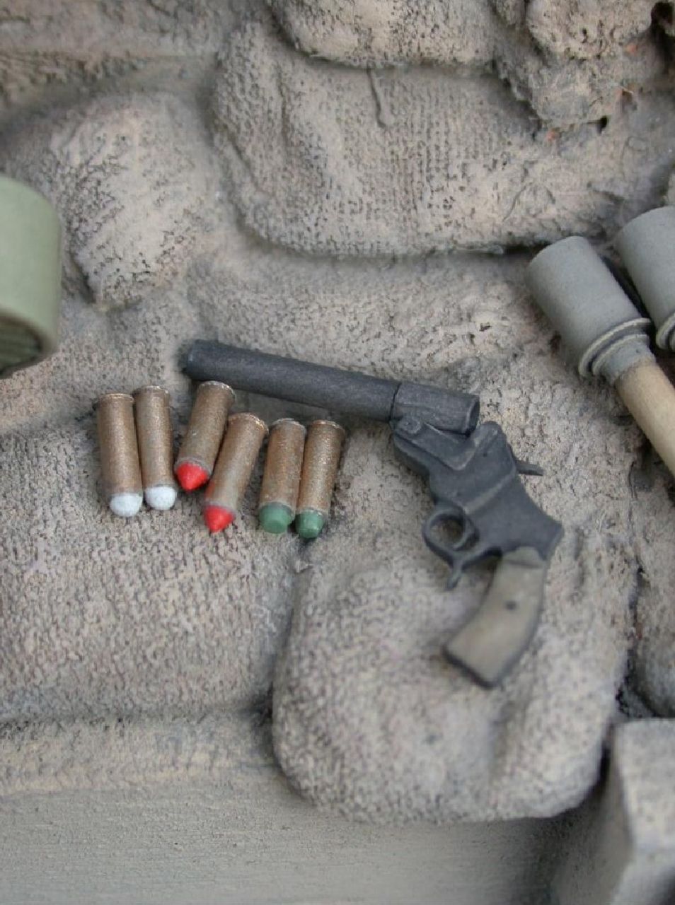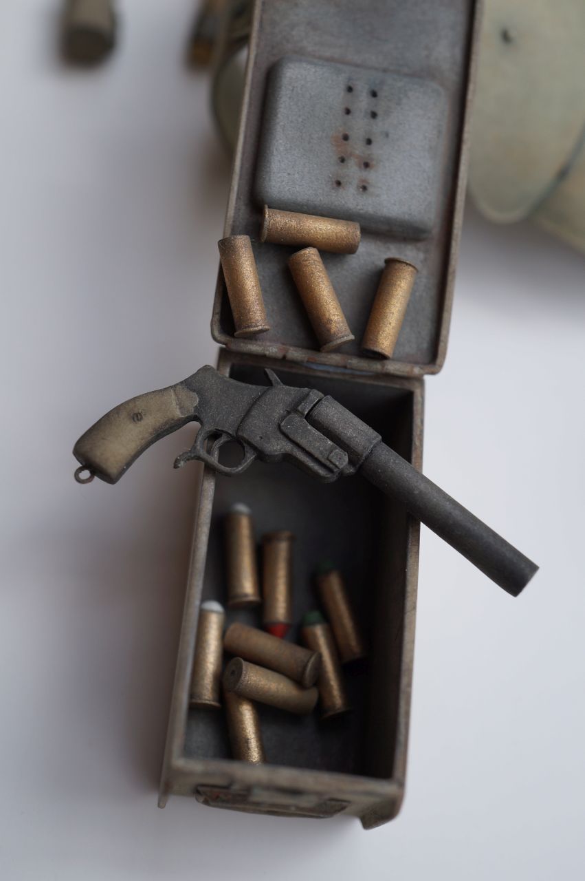 1/16 (120mm) German 17mm Signal / Flare Gun & MG Ammo Box M1911 Set 1/16 (120mm) German 17mm Signal / Flare Gun & MG Ammo Box M1911 Set Stückpreis: 6,90 EUR Endpreis zzgl. Shipping cost Gewicht: 6,00 g German 17mm Signal / Flare Gun & MG Ammo Box M1911 – open (without dividing wall, for tools / spare parts etc.) / Leuchtpistole a. A. (alte Art – old type) Kaliber 17mm & Patronenkasten Mod. 1911 – offen (ohne Zwischenwand, für Werkzeug, Ersatzteile usw.) Scale / Maßstab: 1/16th (120mm) Material: Resin Parts / Teile: 16 Code / Artikel-Nr.: IS67 Attention: Not a toy. Model kit or model making accessories – not suitable for children under 14 years of age. / Achtung: Kein Spielzeug. Modellbauzubehör – nicht für Kinder unter 14 Jahren geeignet GPSR Data / Angaben Manufacturer / Hersteller: Jon Smith Modellbau Responsible Person / Verantwortliche Person Address: Hannoverstr. 68, 29664 Walsrode, Germany Contact / Kontakt: info@jonsmith-modellbau.com Tel: +49 (0)5161 8255 Contents / Inhalte: MG Ammo Box M1911 – open / Patronenkasten Mod. 1911 – offen Ammo Box Lid / Patronenkastendeckel Signal / Flare Gun – (2 parts) / Leuchtpistole – (2 Teile) 6 x 17mm Flare Gun Cartridges / 6 x 17mm Signalpatronen 6 x Empty 17mm Flare Gun Cartridges / 6 x Leere 17mm Signalpatronen The double belt ammunition box produced in galvanized sheet metal (known colloquially as PK11 – PatronenKasten 11). As on the PK 15, the metal carrying handles were widened where the hand would grip to give added ease whilst carrying. The handle folds back snug within the lid inlet. The internal dividing wall was in some cases removed to enable the ammunition box to function as a tool or spares container. Colour – outer: green / grey. Inner: galvanized steel. These ammo boxes showed often a battered appearance on original photos with the corners and tops particularly worn. Quantity